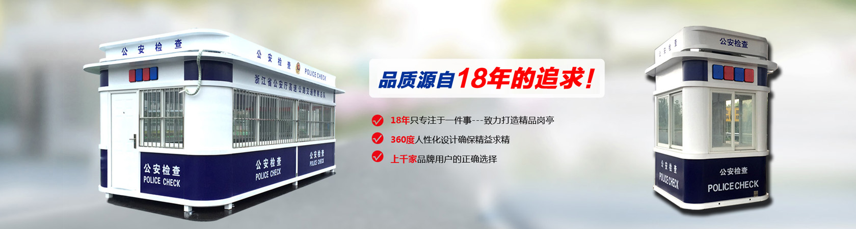 公司主要生產各類崗亭,包括高速公路收費亭系列、治安崗亭、交通崗亭、售貨亭、公交亭、書報亭、小區崗亭等,崗亭材質齊全有:不銹鋼崗亭、鋼結構崗亭、鋁塑板崗亭、玻璃崗亭、木制崗亭、金屬雕花板崗亭、PVC掛板崗亭等,適用于各政府機關、道路交通、機場港口、地產建筑等多個行業領域。